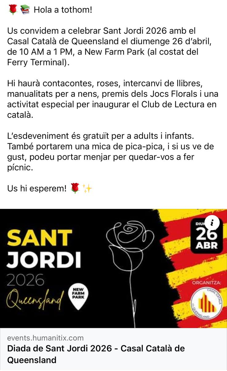 Sant Jordi 2026 a Brisbane